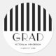 Las etiquetas modernas y elegantes de la fiesta de graduación de rayas blancas y negras presentan una elegante tipografía de arte deco.