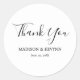 Moderna y Minimalista | Boda Clásico Pegatina Redondo Estos elegantes y modernos bodas agradecen a los pegatinas por su sencillo diseño de texto en blanco y negro que rebosa de estilo minimalista. Añada sus iniciales o su monograma para hacerlas completamente propias.