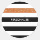 Pegatina Redonda Modernas rayas negras FAUX Naranja Glitz y nombre