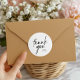 Diseñado con caligrafía negra limpia sobre blanco crujiente, esta pegatina moderna convierte cualquier favor o sobre en un gesto pulido de gratitud. Inspirada en la elegancia de las notas escritas a mano, añade un toque final elegante a tu celebración mientras mantiene el aspecto chic y atemporal.