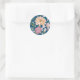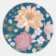 Pegatina Redonda Moderno Amarillo y Rosa Floral en Azul