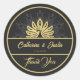 Pegatina Redonda Moderno Art Deco Peacock Gold y Boda negro