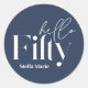 Pegatina Redonda Moderno azul marino mínimo simple 50 cumpleaños