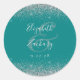 Pegatina Redonda Moderno Boda perimetral de Purpurina de plata azul