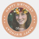 Pegatina Redonda Moderno Boho Sencillo Elegante Feliz Fotos de Cump