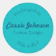 Pegatina moderno y creativo con un fondo turquesa de cuero en textura. Marco de costura azul extraíble; emparejado con un tipo de letra divertido e informal que refleja tu personalidad e industria. La plantilla está lista para que el cliente actualice su información comercial.