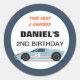 Pegatina Redonda Moderno dos Race Car Boy Segundo Cumpleaños