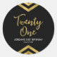 Este moderno pegatina redondeado presenta un elegante diseño geométrico de chevron y las palabras "Twenty One" en oro falso contra un fondo negro; perfecto para un Fiesta de cumpleaños número 21. Consulta aquí las invitaciones y los elementos coincidentes http://www.zazzle.com/collections/modern_faux_gold_chevron_celebration_collection-119531050277382712?rf=238364477188679314 Personalízalo con tus detalles reemplazando el texto del marcador de posición. Para obtener más opciones, haga clic en el botón "Personalizar". *Tenga en cuenta que la marca de agua Zazzle que aparece en la vista previa del zoom NO aparecerá en el producto impreso final. © Rosewood y Citrus
