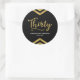 Este pegatina redondo de moda presenta un elegante chevron geométrico y la palabra "Treinta" en oro falso contra un fondo negro. Es genial para una celebración de 30 años. Consulta aquí las invitaciones y los elementos coincidentes http://www.zazzle.com/collections/modern_faux_gold_chevron_celebration_collection-119531050277382712?rf=238364477188679314 Personalízalo con tus detalles reemplazando el texto del marcador de posición. Para obtener más opciones, haga clic en el botón "Personalizar". *Tenga en cuenta que la marca de agua Zazzle que aparece en la vista previa del zoom NO aparecerá en el producto impreso final. © Rosewood y Citrus