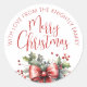 Pegatina Redonda Moderno guión navideño rojo se dobla de nombre