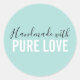 Hecho a mano con amor tipografía verde turquesa guión pegatina redonda clásica