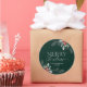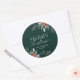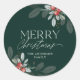 Esta pegatina navideña redonda presenta una elegante vegetación de invierno y bayas sobre un fondo verde oscuro. El diseño se acentúa con el moderno texto a mano "Feliz Navidad" que ofrece un toque de sofisticación.