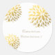 Pegatina Redonda Moderno Relieve metalizado dorado Floral Blanco El