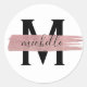 Pegatina Redonda Moderno Rosa Oro Paint Clásico Monograma Blanco