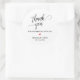 Moderno Boda Minimalista Gracias Regalos Clásicos Pegatina Redondo, en escritura elegante, corazón rojo, con firma de novios y novios y fecha boda, tema blanco y negro.
