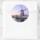 Pegatina Redonda Molino de viento durante el amanecer en el pegatin