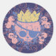 Cráneo de reina de piratas y emblema de pirata cruzado. Colores, manchas, remolinos y coronas, en camisetas, sudores, tarjetas, tazas, regalos.