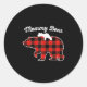 Pegatina Redonda Mommy Bear Flannel Red Plaid Pajama Family Matchin