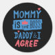 Pegatina Redonda Mommy is the boss Daddy and I agree