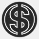 Pegatina Redonda Moneda de símbolo del dólar en círculo negro