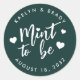 Pegatinas de favores matrimoniales de Punny presentan "menta para ser" en escritura con letras con letras blancas acentuadas con corazones, en un oscuro fondo verde del bosque. Personalice su nombre y fecha de boda.