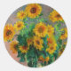 Pegatinas con la pintura al óleo de Claude Monet, Bouquet of Sunflowers (1881). Hermosos girasoles en un jarrón azul sobre una mesa roja. Un gran regalo para los aficionados al impresionismo y al arte francés.