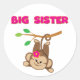 Un mono lindo con una flor rosa balanceándose por su cola desde una rama y un texto rosado dice "Gran Hermana" en camisetas de la hermana mayor, cadenas de llaves, tarjetas, pegatinas, bolsas de té, imanes, mousepads, almohadas, y otras prendas y regalos de la hermana mayor.