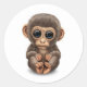 Pegatina Redonda Mono bebé lindo y curioso en blanco