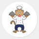 Pegatina Redonda Mono como Cocinero con placas de servicio