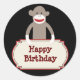 Pegatina Redonda Mono de media luna feliz cumpleaños Pegatinas