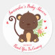 Pegatina Redonda Mono marrón lindo con Baby Shower de flores rosada