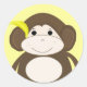 Un mono tonto con una cara linda, piel oscura y un plátano en la oreja. En un fondo amarillo.