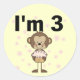 Pegatina Redonda Mono Soy 3 camisetas de cumpleaños y regalos