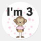 Pegatina Redonda Mono Soy 3 camisetas de cumpleaños y regalos