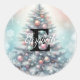 Pegatina Redonda Monogram name Christmas tree floral watercolor