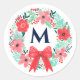 Pegatina Redonda Monogram Red Bow Floral Wreath Christmas