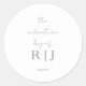 Pegatina Redonda Monogram Sage Green Quote Adventure Begins Wedding