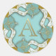 Monograma Un turquesa ornamentado sobre fondo dorado.