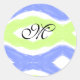 Pegatina Redonda monograma abstracto de acuarela verde azul simple