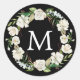 Pegatina Redonda Monograma Acuarela Color blanco negro Flora