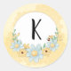 Pegatina Redonda Monograma amarillo con el patrón de abeja con burb