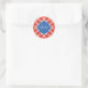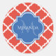 Pegatina Redonda Monograma azul trendy y quatrefoil rojo