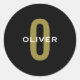 Pegatina Redonda Monograma blanco dorado negro personalizado