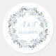 Pegatina Redonda Monograma blanco gris azul Boda floral