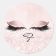 Pegatina Redonda Monograma blanco Purpurina Lágrimas de ojos rosado