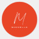 Pegatina Redonda Monograma blanco rojo elegante caligrafía su nombr