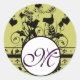 Pegatina Redonda Monograma Boda Aves Corazones Natación