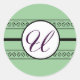 Pegatina Redonda Monograma Boda Borders Mint