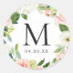 Pegatina Redonda Monograma Boda Fecha Rubor Floral Rosa