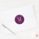 Pegatina Redonda Monograma Boda morado y dorado